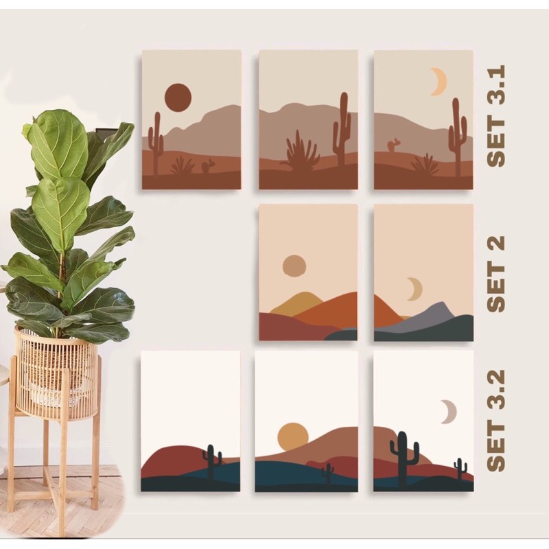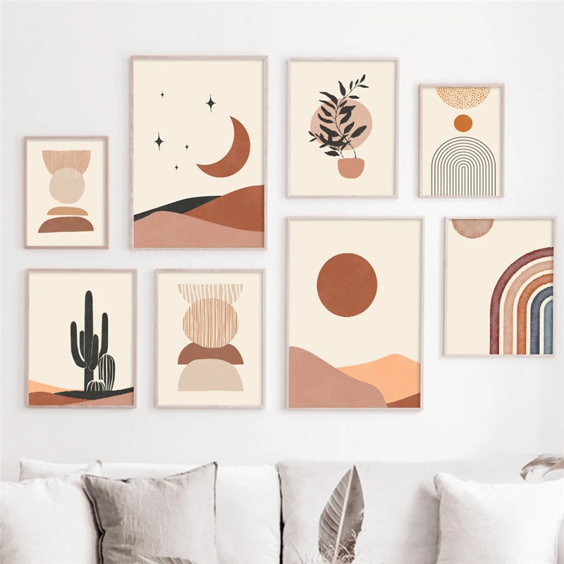 Room Decor Aesthetic Wall Poster And Print Minimalist Beige Art Sunrise Moon Desert Landscape Geometry Modern Canvas Painting Painting Calligraphy Aliexpress